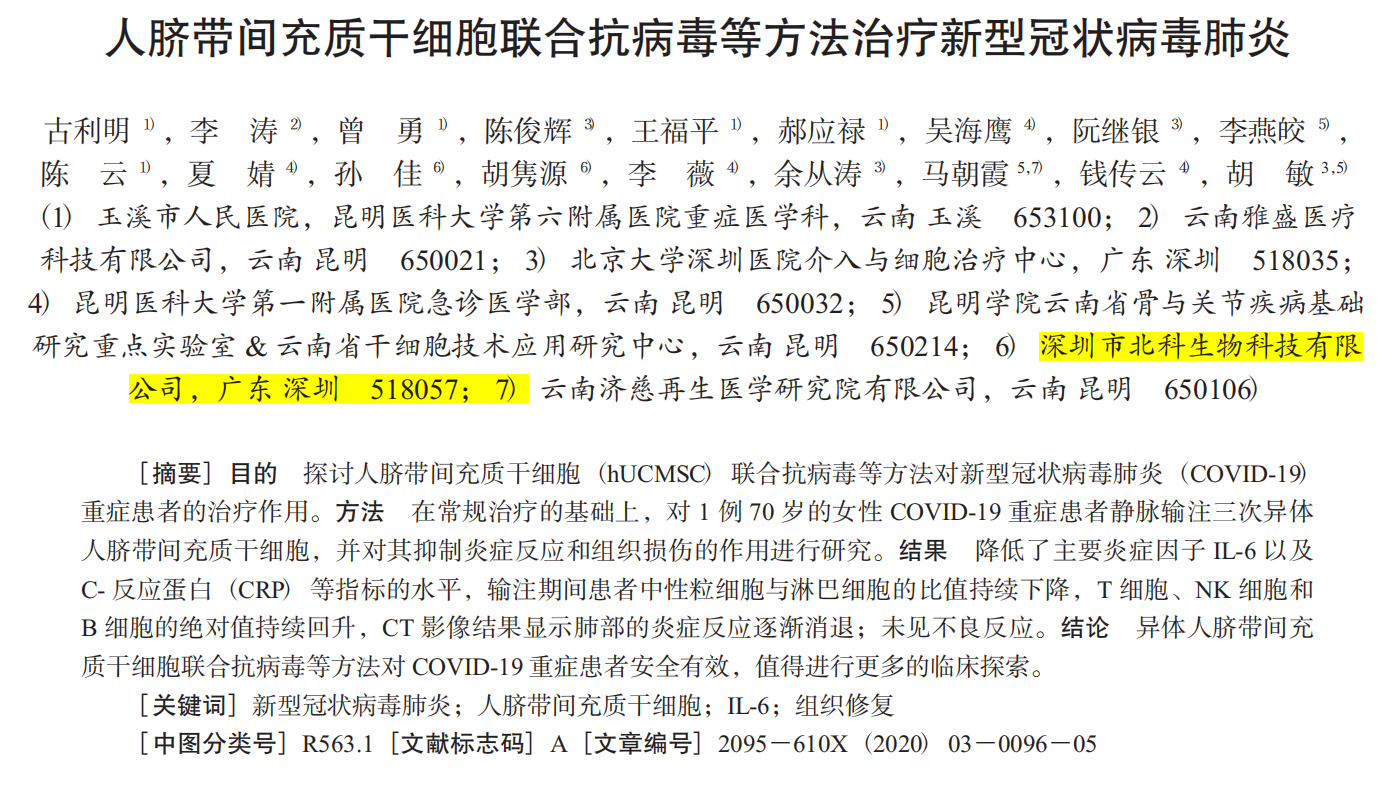 間充質(zhì)干細(xì)胞抗擊新冠疫情!北科生物聯(lián)合云南多家醫(yī)療機(jī)構(gòu)發(fā)表最新論文