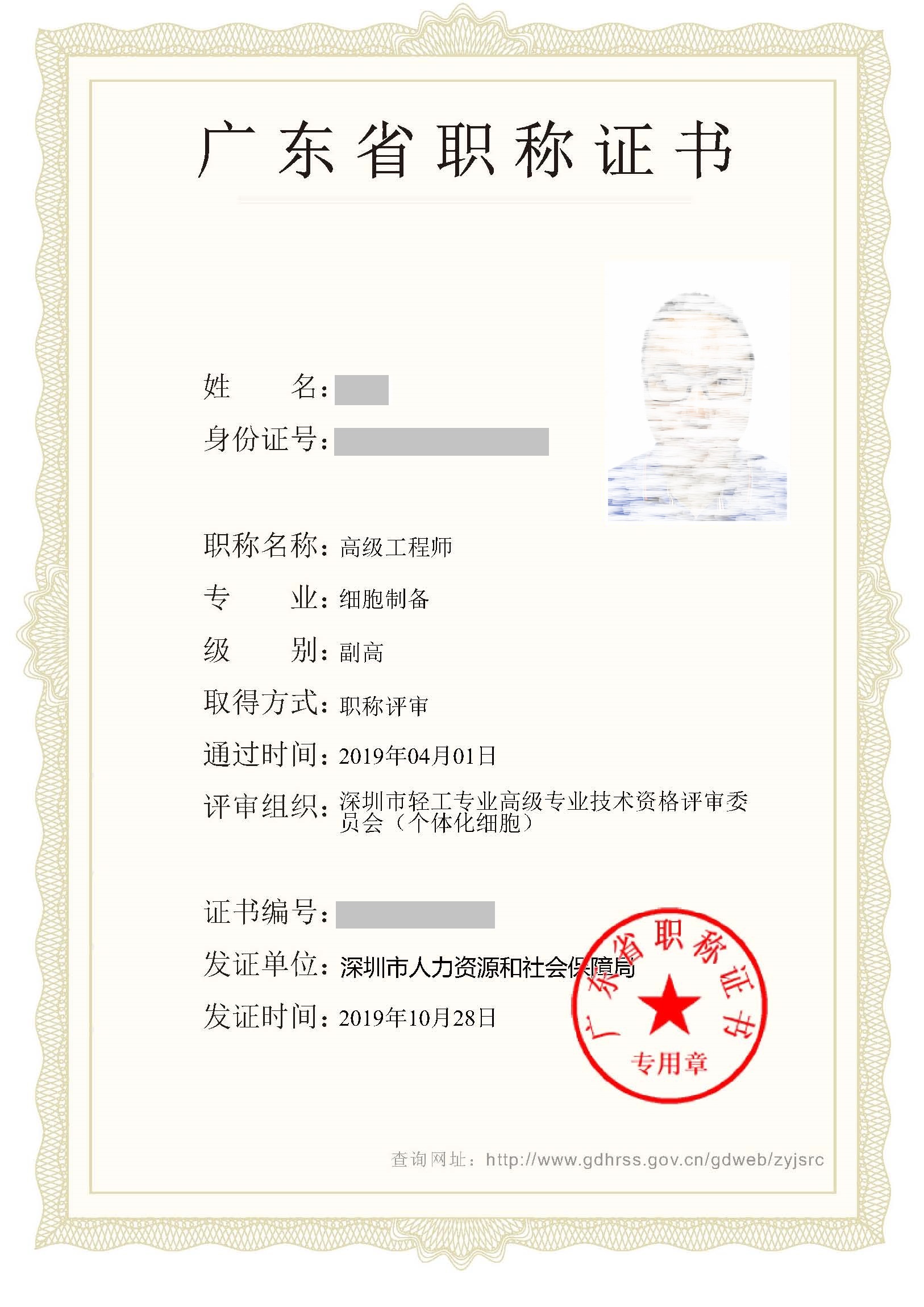 日前,細(xì)胞行業(yè)從業(yè)人員迎來(lái)了鼓舞人心的消息,由深圳市人力資源與社會(huì)保障部頒發(fā)的“細(xì)胞制備高級(jí)工程師職稱(chēng)證書(shū)”和“細(xì)胞質(zhì)量管理高級(jí)工程師職稱(chēng)證書(shū)”正式制證完畢,已可通過(guò)廣東政務(wù)官網(wǎng)進(jìn)行查詢(xún)。這一里程碑式的事件標(biāo)志著個(gè)體化細(xì)胞技術(shù)這一新興行業(yè)的專(zhuān)業(yè)技術(shù)人才,終于擁有了屬于自己的“人才戶口本”,細(xì)胞行業(yè)正式開(kāi)始“執(zhí)證上崗”!