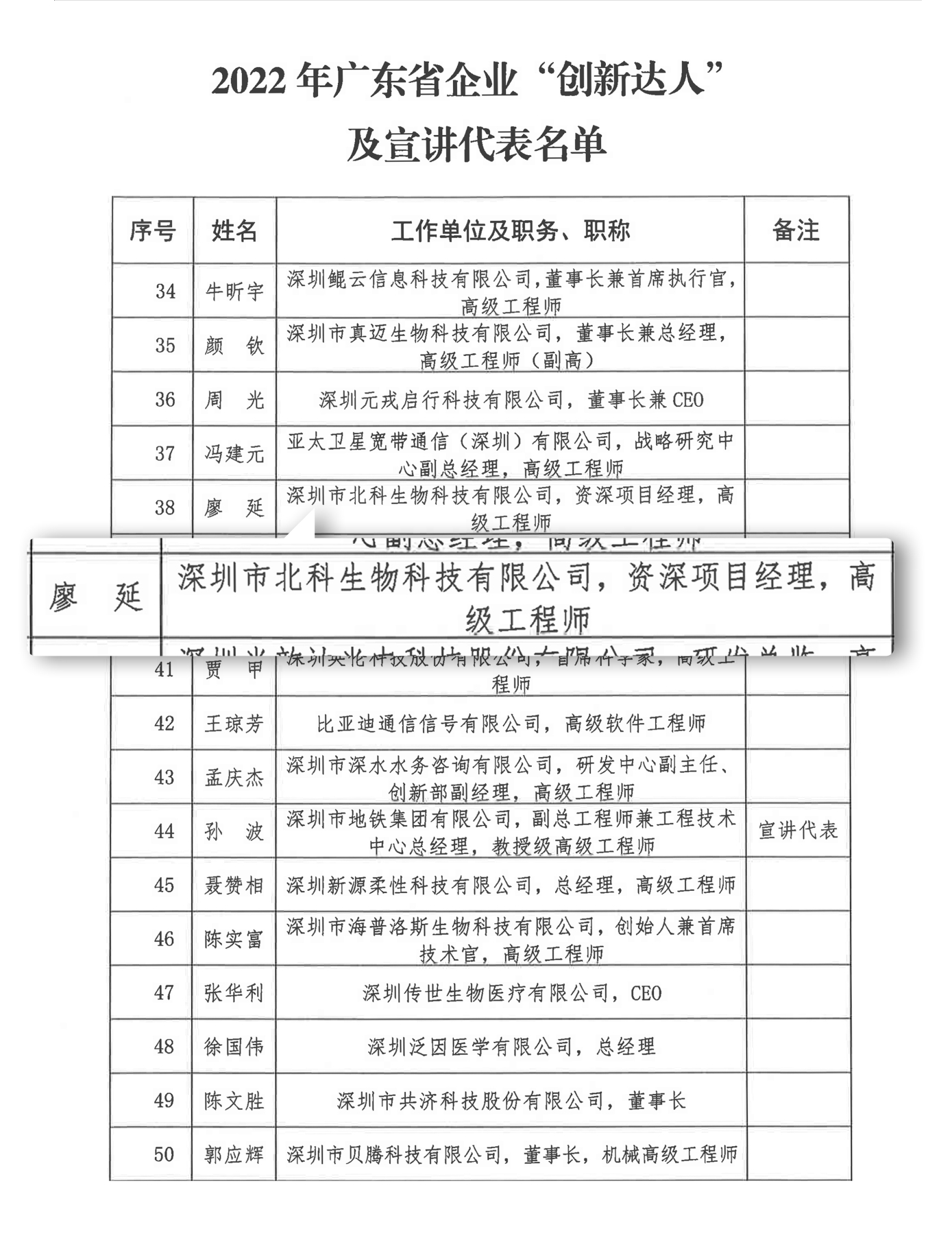近日,根據(jù)中國科協(xié)關(guān)于開展2022年企業(yè)“創(chuàng)新達人”宣講活動的部署,廣東省科協(xié)開展2022年廣東省企業(yè)“創(chuàng)新達人”評選及宣講活動。深圳市北科生物科技有限公司研發(fā)中心高級工程師廖延博士榮獲廣東省企業(yè)“創(chuàng)新達人”稱號。